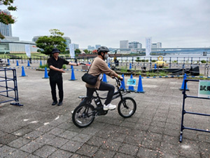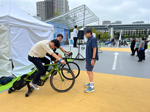 最新モデルの自転車を気軽に試せる「東京ベイバイシクル」では、会場内に専用の試乗コースをご用意しています。柵で囲まれた安全なスペースなので、歩行者を気にせず思いきり走れるのが嬉しいポイントです。