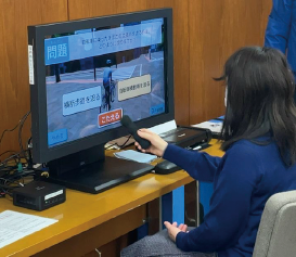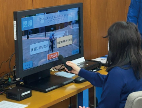 交通安全教育シミュレータは、仮想現実(VR)の世界に再現されたリアルな街を通行して、危険予測と安全確認の重要性を体験できる学習システムです。さまざまな交通場面を体験することによって、正しい交通ルールを学習し、危険を予測する能力を高めることができます。