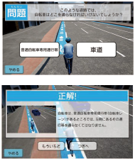 自転車のルールや安全な乗り方について、クイズを通して楽しく学習できるソフトです。クイズに答えると、正しい通り方や違反による危険の例を動画で見ることができます。
