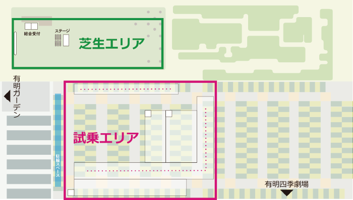 | 開催場所 | ●豊洲会場:豊洲公園 花木とモニュメント広場 〒135-0061東京都江東区豊洲2丁目3 ●有明会場:有明ガーデン スポーツエンターテイメント広場 〒135-0063 東京都江東区有明2丁目1 |